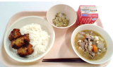 ごはん、牛乳、鶏肉とごぼうの甘唐揚げ、みそしる