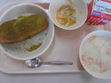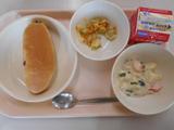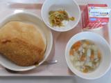 1/2はちみつ食パン、牛乳、カレークリームスパゲッティ、ベジタブルスープ