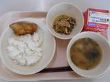 ごはん、牛乳、さばの甘唐揚げ、キャベツのおかかあえ、みそ汁