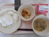 ごはん、牛乳、さばのカレー揚げ、もやしのうま煮、けんちん汁