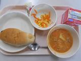 食パン、みかんジャム、牛乳、チリコンカン、コンソメスープ