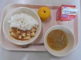 ごはん、牛乳、生揚げの四川煮、野菜スープ