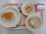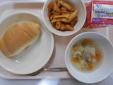 ロールパン、牛乳、からあげ、コンソメスープ、なし