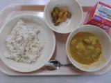 麦ごはん、牛乳、ポークカレー、きゅうりの中華づけ
