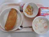 ロールパン、牛乳、マカロニグラタン、コーンソテー、メロン