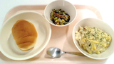 はちみつロールパン、ひじきのサラダ、マカロニグラタン