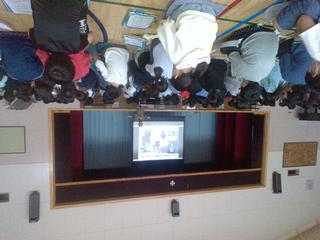 国語の教科書に載っている「想像力のスイッチを入れよう」の筆者である下村健一先生をお招きして一緒に情報の受け取り方・発信の仕方を考えました。