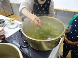 12月18、19日で栄養士の吉田先生と一緒に育てた大根でおみそしる作りをしました。