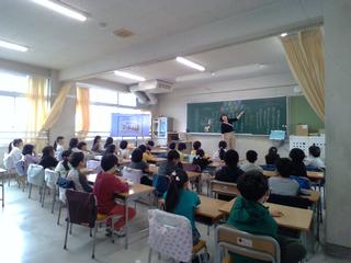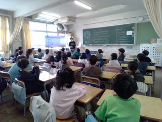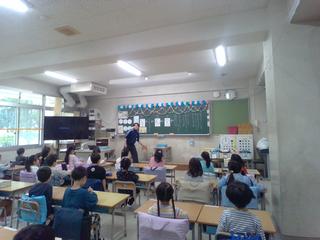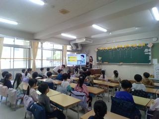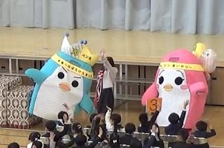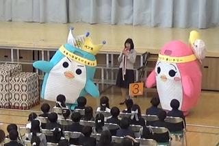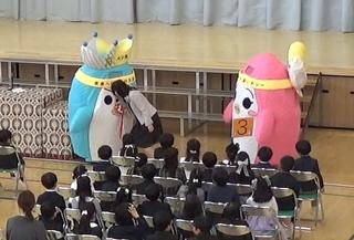 ペンタさんに、久本小学校の自慢を聞いているところです。