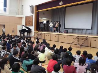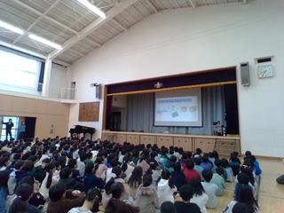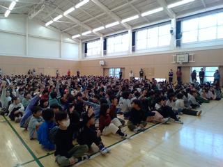 朝8時35分から、体育館に集まっての集会です。