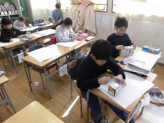 面を写し取って、これから自分の箱と同じ箱を作ります。同じ箱ができあがるか楽しみです。