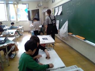 今日は、コンパスや定規を使って作図をしています。