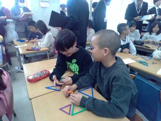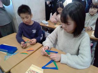 作り終わった三角形を見せあって、グループ分けをしていきます。