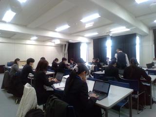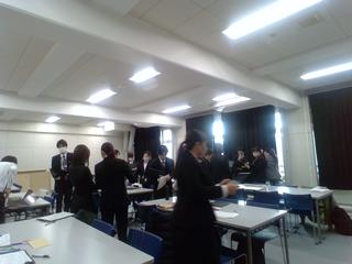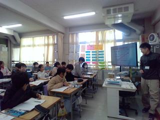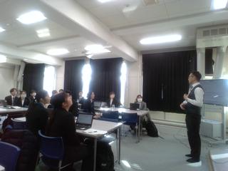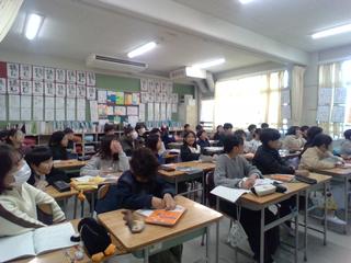 先生方の授業の振り返りです。指導主事の方のお話にも真剣に耳を傾けています。