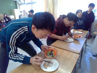 ◯給食委員会企画「豆つかみ大会」