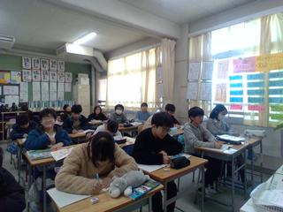 先生1年目の先生方が授業を参観し、研修をしていきます。