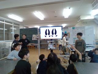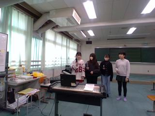 発表の一部です。理科、体育、社会、国語のグループに分かれて