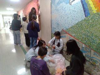 今日は、3年生、4年生が「おわかれの掲示板」を作製していました。
