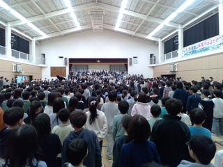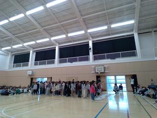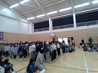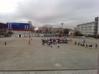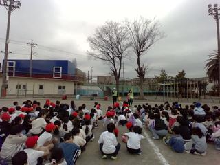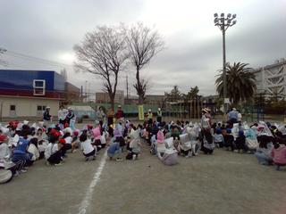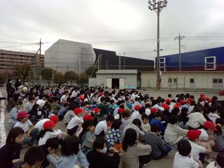 校庭で遊んでいた子供たちも、校庭の中心に集まります。