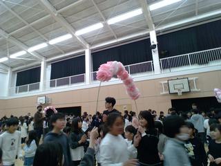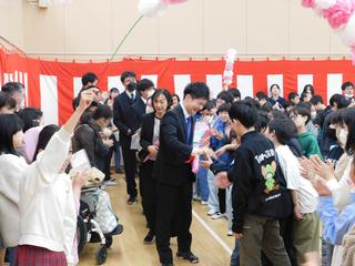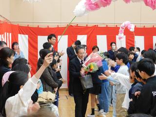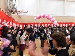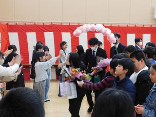 最後は、花のアーチをくぐって 6年生が退場です。