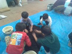 「ここもっと掘って!」「ここに山を作ろう!」と互いに声を掛け合いながら、友達と仲が深まるすてきな時間になりました。