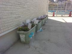 ビオラの苗とチューリップの球根を植え、一人ひとりが作成したメッセージカードを添えました。