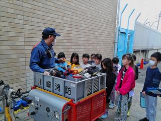 社会科の学習では、「火事からまちを守る」学習を行っています。