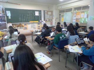 交換授業・専科の授業もまたはじまり多くの教員で子供たちを見守っています。