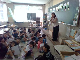 「やくそく」の学習では、おはなしをたのしむためにあおむしになりきって、音読をしました。