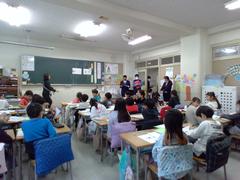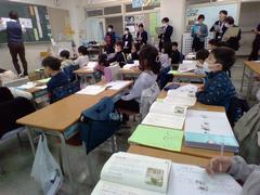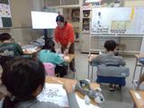 この日は第1回校内研究授業が行われ、4年生の3クラスが授業を公開しました。「見せ方を工夫して書こう ~新聞を作ろう~」の学習です。