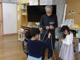 地域の方をお招きし、昔遊びをしました。けん玉やこま、竹とんぼなど、これまで親しんできた遊びに、子どもたちは楽しそうに取り組んでいました。地域の方に優しく声をかけていただきながら、何度も挑戦する姿や、できるようになったことを嬉しそうに伝える様子が見られ、笑顔いっぱいのあたたかな時間となりました。
