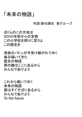 受け継いだものを歌で表現しました。歌詞には「この場所にいることの奇跡」などという言葉も入れ、下の学年のみんなの心に響くようにしました。