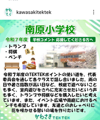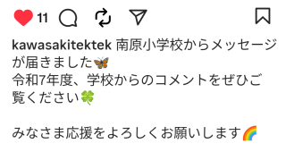 12月25日の「川崎市『かわさきTEKTEK』公式アカウント」のインスタグラムとXに、南原小学校が紹介されていました。
