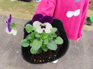 川崎市市制100+1年のプロジェクトで150株のビオラが届いたので、自然委員会が第4公園脇に植え替えてくれました。