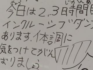 以上が、本日の1時間目の教室の様子。2時間目のインクルーシブダンスに向けて、揃いのTシャツ。教室はカラフルでPOP、そして新鮮な光景でした。