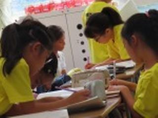 家庭科室では、6年生が「炒める調理」の実習をしていました。秋風に乗って、朝から美味しそうな香りが漂って来ました。