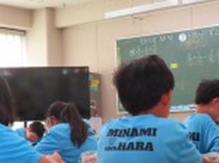 5年生と6年生の教室では、その時間の学習の振り返りを書いていました。
