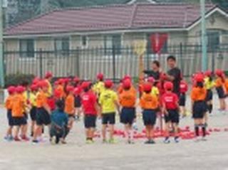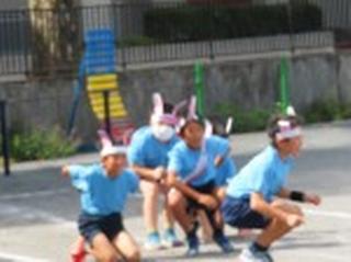 来週の月曜日が中秋の名月ということで、今回の集会テーマは「うさぎの運動会」だそうです。模擬キャンディーが入ったピニャータ。加えて、全員が手作りのうさぎの耳をつけていて可愛い。白い耳のシロピョンチームと、黒い耳のクロピョンチーム。友達のことも「〇〇ピョン」と呼び合っていて、何とも微笑ましい光景でした。