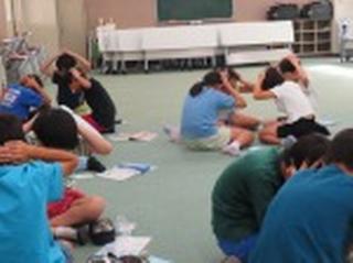 その場でとっさに身を守り、耳を澄ましていた子どもたち。中休みの歓声が一瞬に消え、学校中がシーンとなりました。さすが南原の子。