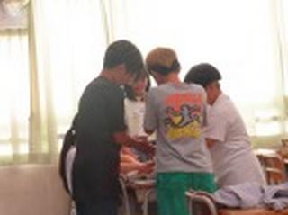 今日の中休みは、それぞれの組に分かれて、応援団が応援歌・応援コール等をそれぞれのチームのメンバーに伝達しました。