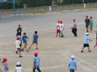 4年生たちは、学年みんなでドッジボールをしていました。涼しくて気持ちの良い校庭。秋風にのって、子どもたちも身軽に動き回っていました。