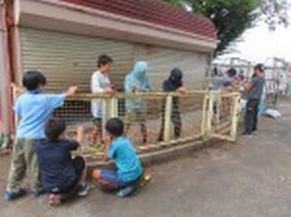 今日の5年生の飼育小屋再生整備チームは、必死にサビ落とし。シャッターを下ろして洗浄。窓も磨く。