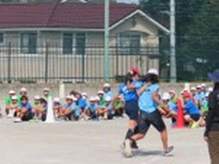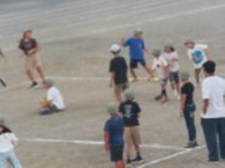 フライングディスク3枚が飛び交う中、5年生たちの「ウェーイ」と喜び合う声が校舎まで響いて来ました。