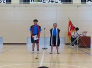 1.応援団長による優勝旗・準優勝杯返還と、熱いメッセージ 2.得点係から「得点方法のお知らせ」の周知