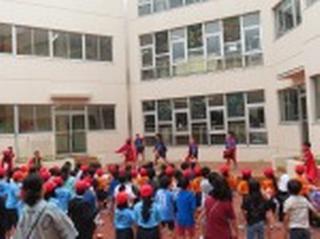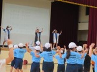 続いて、創立40周年記念運動会「プレ・オープニング・セレモニー」。子どもたちの気持ちを盛り上げる機会となるよう、昨年度まで開会式で行っていた内容を、一部前倒しして行いました。