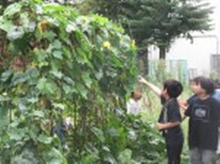 先日5年生が理科の受粉の学習を終えて、4年生に「雄花ばかりだから実がつかないよ」と教えてくれたので、4年生たちは、5年生の助言通りにお世話をしたところ、何と!雌花がつきました!もうかなり秋めいてきたのに。感動!