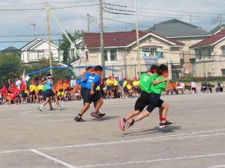■ブルーフロア演目:学年を越えて息の合った走り・瞬発力を生かしながら勝ちをねらう真剣な姿。応援席では、グリーンフロアのみんなが必死に応援していました。