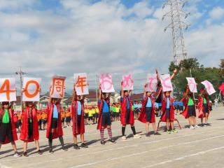 ■全校種目「大玉おくり」:ゴールすると「40」の文字が現れて…「40周年おめでとう!」。
