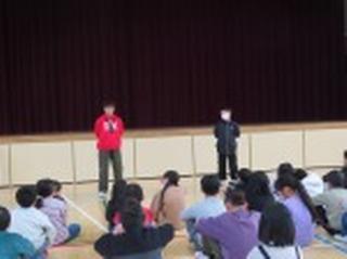 運動会明け。一皮むけた様子の子どもたち。今日は応援団の解散式をしていました。