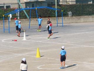 運動会終了して2日目。校庭では5年生がティーボールをしていました。もう「次へ」と進み出している子どもたち。